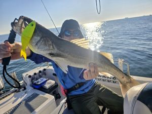 ブログ復活しました!12/7午前シーバス ビッグベイトはバイト少な目でしたが、2名のみ70upキャッチ👍👍👍 その後ミノーで鳥山ボイルあり入れ食いでした! 結果 シーバス 45〜72.78cmまで S号艇 35本キャッチ! N艇 47本キャッチ! 平日週末ガラガラです! お気軽にお問い合わせください🙏 7日(火)18:30ナイトシーバス便募集中!現在1名様