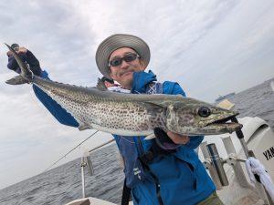 2025.10.13 サワラ便 サワラでで出船! 前半、良いベイトに当たりバタバタとヒット!! しかし、魚が見えてくると船べりでバレちゃう〜😭😭😭 キャッチ数は伸びませんでした😭 同じ方にヒットが集中してました。 後半は雨も降ってきて、ゲストの方の電池も切れてしまい早上がりとなりました😅 残念ながらタチウオは混じりませんでした😭 結果 サワラ6ヒット 2.2.〜3kgまで 2本キャッチ! とらふぐ1