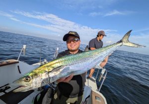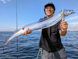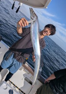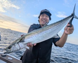 2025.10.5 サワラ他 今朝は1投目からヒットして良い感じ! 途中皆さんお疲れの時間も有りましたが頑張って巻き巻きしてくれました! ミノージャークで!! 結果 サワラ2.3〜2.8kgまで 0〜2本/1人 計6本 タチウオ F4〜F5.5まで 0〜4本/1人 計7本 シイラ 1〜5本/1人 計14本 ★竿頭は渡辺さん★