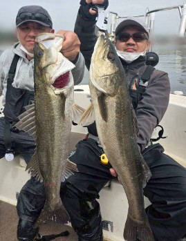 2026.4.18 シーバス便 野口艇はお馴染み様お二人乗せて出船💨 穴撃ち練習中とのこともあり、ストラクチャー、穴撃ちオンリーで! 澄み潮で水族館みたいな海の色😳 魚がチェイスする様子やバイトする様子まで全て丸見え🤩 しかし、そのせいなのかバラシ続出…?? 日下さん70.72.74㎝! 山崎さん76cm!! ヒットする魚はどれも大きくてアベレージ60cm🌈🔥 バラシ30発以上でしたが、気分は入れ食い🤣 結果 シーバス 55㎝~70.72.74.76㎝迄 合計26匹